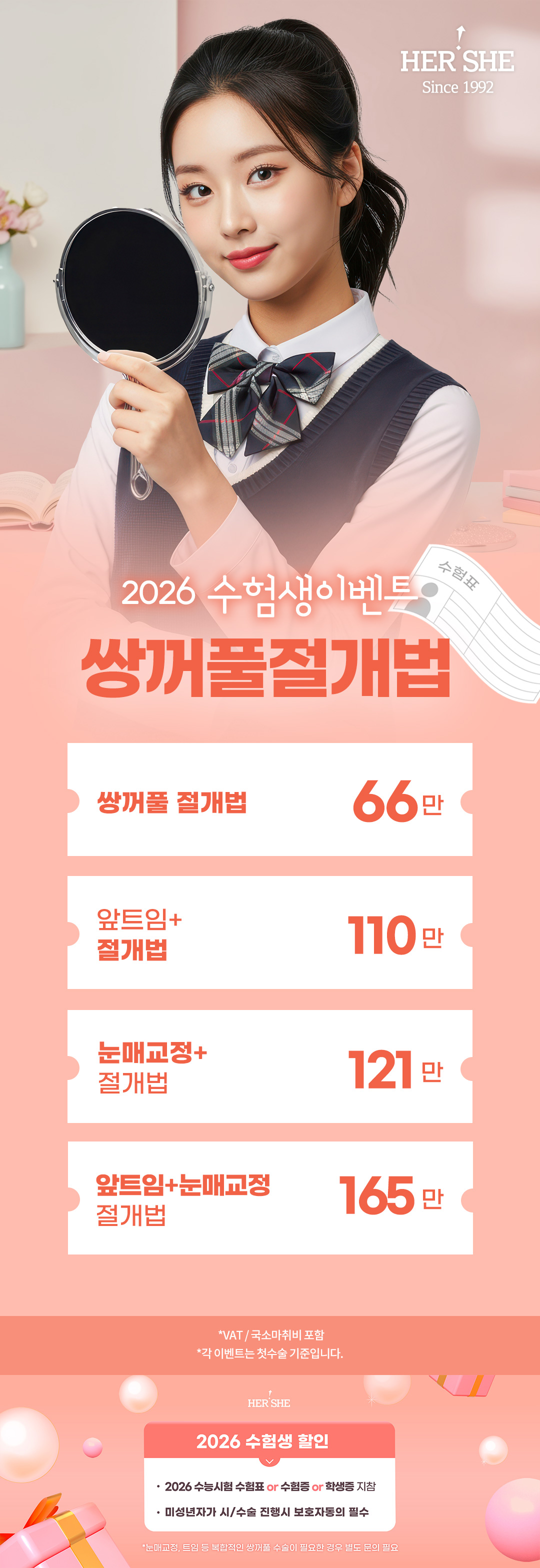 | 2026 수험생 쌍꺼풀 절개법 이벤트 2024-08-13 hit.7,276 | |